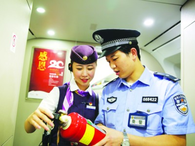 合福高铁开通以来,面对新线安保中乘务警力不足、工作重心调整、岗位变动面广的巨大压力,蚌埠铁路公安处乘警支队党总支积极作为、不等不靠、超前行动,加大列车反恐防暴措施的落实,严格安检查危工作,加大“票、证、人”的查验力度,及时安排兼职消防员对新线运行列车进行消防安全监督检查,努力为旅客营造舒心安全的出行环境。 王浩摄