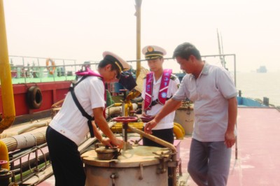 8月30日下午,安庆海事局东流海事处东流港执法大队,在对到港的危险品船舶“兴中油099”轮实施装卸作业现场检查时发现,船舶应急计划制订和应急演习的执行情况存在隐患,执法人员与船方进行了沟通,要求船方针对出现的问题,待整改完毕后方可进行装卸货作业。同时,执法人员就天津滨海“8·12”火灾爆炸事故进行了通报,要求船方深刻汲取事故教训,严守危险货物装卸货作业流程,防止事故发生。 易楚乾摄